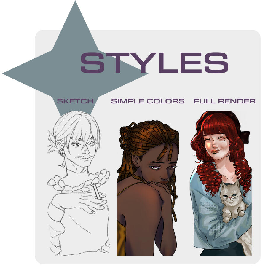 During the sketch phase, you can request changes to the artwork (e.g., facial expressions, posing, clothing). Major changes to the entire composition will not be allowed.